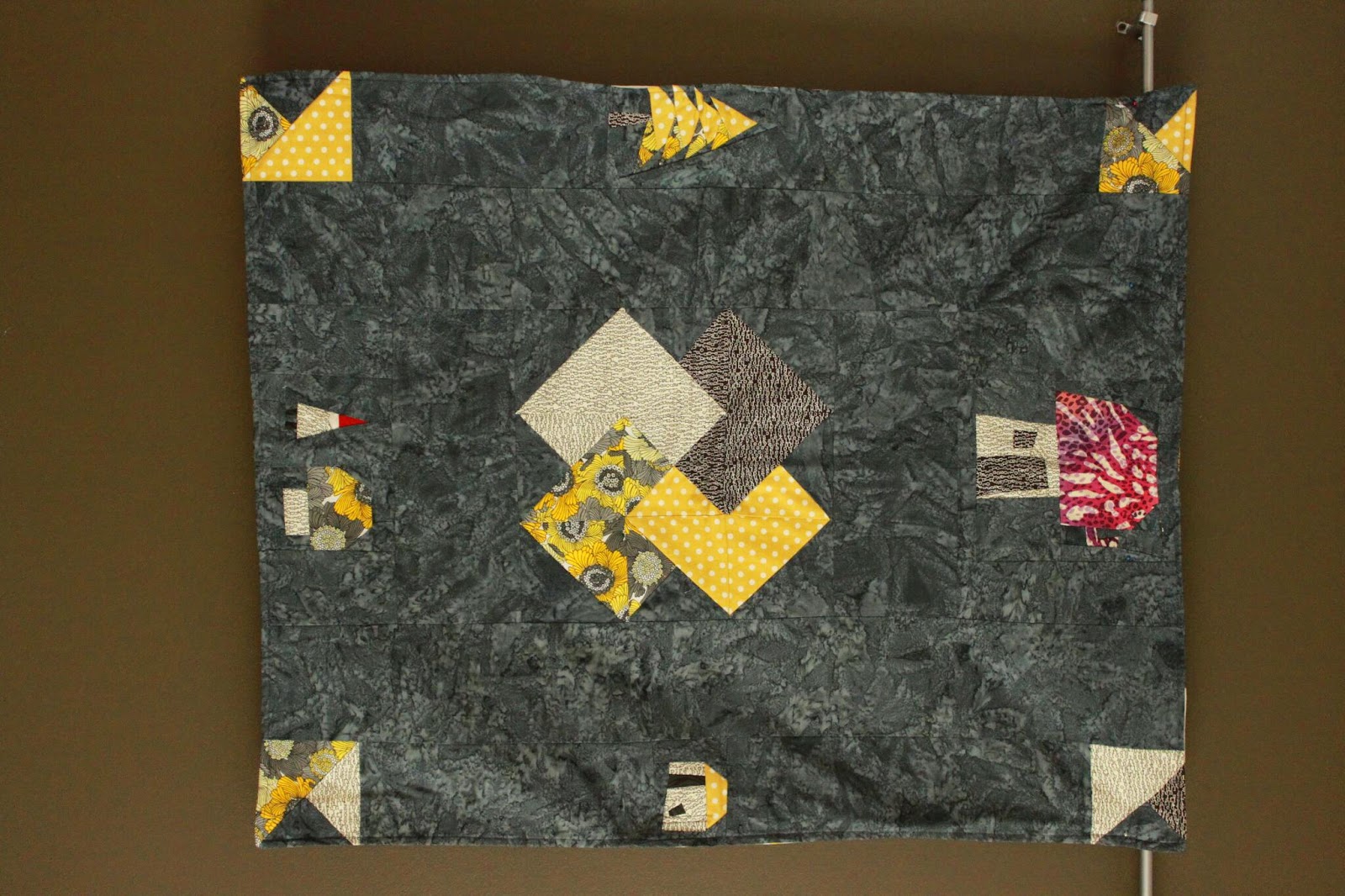 This quilt was my first attempt at paper piecing, each block took forever, it seemed, then, hence why there are so few. I think i would be a bit faster now that i have the hang of it, oh and there is a card trick block in the center that was pieced normally. What i loved about this from the start was how precise paper piecing is, each block comes out perfect, this appeals to my OCD half (self diagnosed) 😇 and the fact that i was able to produce this quality of work so early in my practice because of the ease of use with this method. The results are encouraging, so if you are feeling diwn and need a little boost, check out a how to paper piece method on youtube before you get started, it really hels me to see something being done first, then to play around with it hands on.
