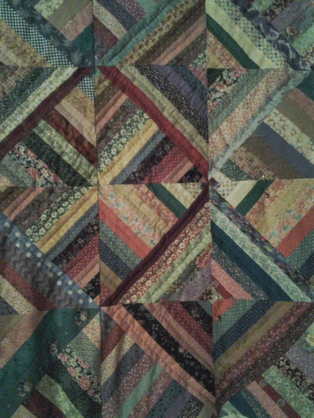 Mom's Quilt; Strip pieced block, a collaborative effort .